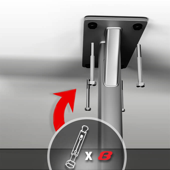 8 chevilles spéciales pour charges lourdes sont parfaitement adaptées pour une maçonnerie en béton et en béton armé et garantissent que la barre de traction reste toujours en position – sans vacillement ni glissement.