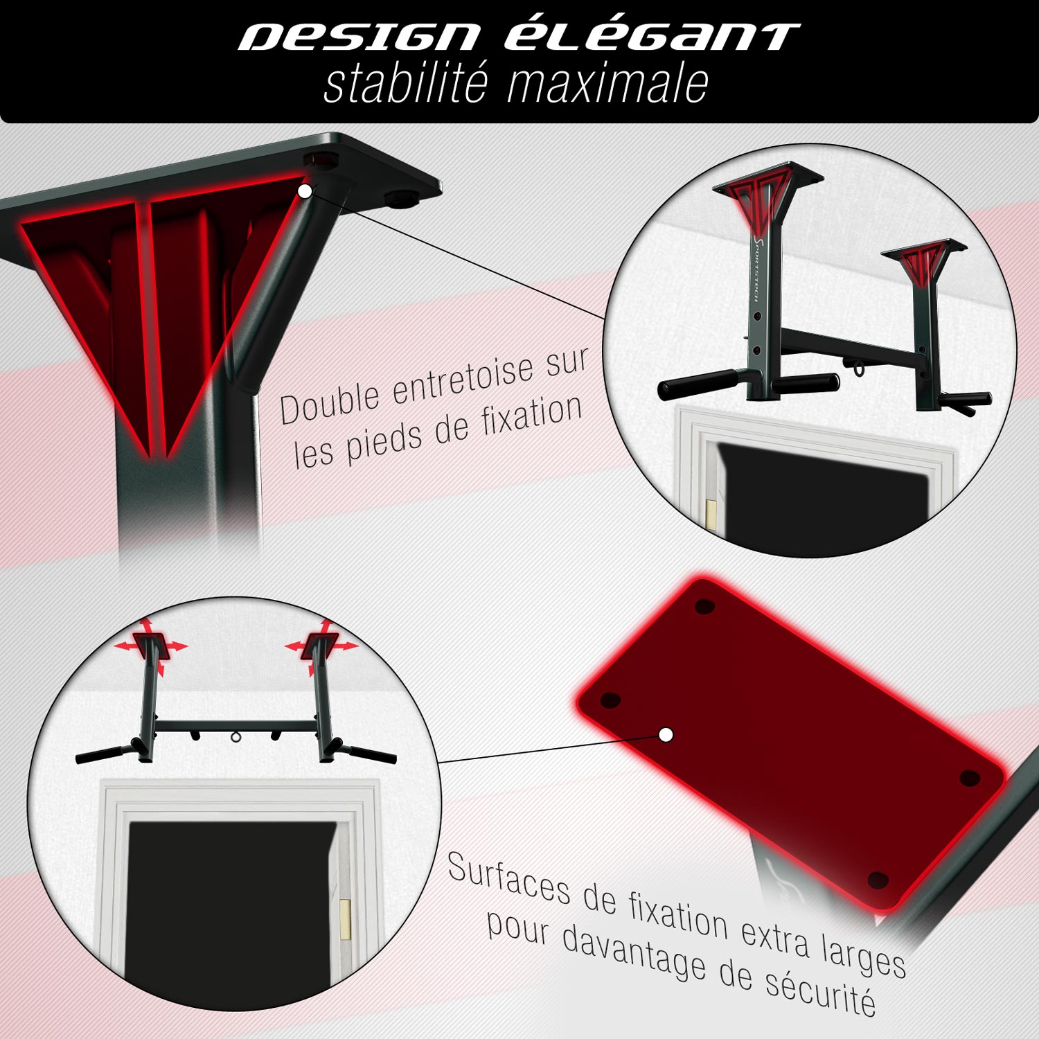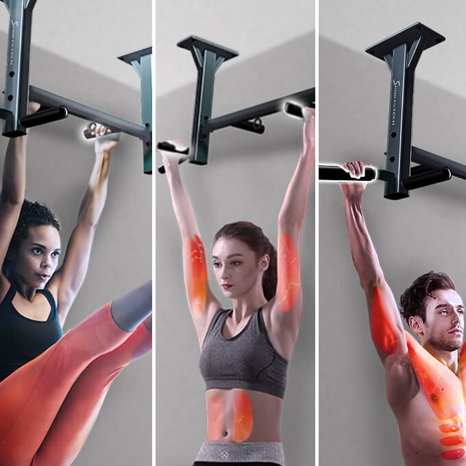 Notre barre de traction transforme votre maison en centre de fitness : utilisez les 3 œillets pour un sac de boxe, une bande TRX ou pour des cordes de puissance et des sangles. Parfait pour, entre autres, la traction, l'exercice du dos, les pull-ups. Votre entraînement n'a pas de limites !