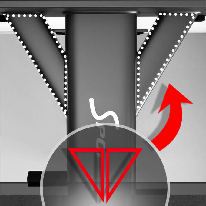 Grâce à la double traversée et aux renforts en V, la KS400 offre beaucoup de support et un sentiment de sécurité accru lors de l'exécution de vos exercices. De plus, des surfaces d'appui extra larges assurent encore plus de stabilité et une grande capacité de charge. Elles répartissent également de manière optimale les forces dans quatre directions.