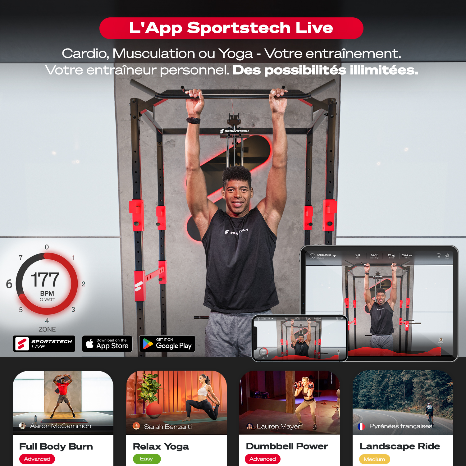 - Sportstech Live App : Fitness personnalisée de niveau supérieur pour toi. Que ce soit pour des exercices de poids corporel, du yoga ou des entraînements cardio.