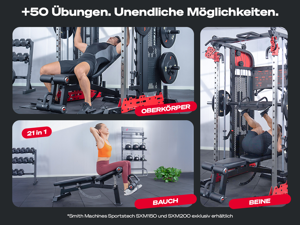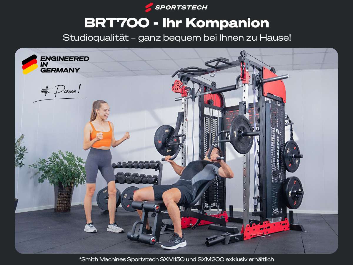 Ja, die BRT700 ist dank ihrer robusten Bauweise und hohen Gewichtskapazität ideal für das Training mit den Smith Machines SXM150 und SXM200 geeignet. Sie bietet die nötige Stabilität und Belastbarkeit für anspruchsvolle Workouts.