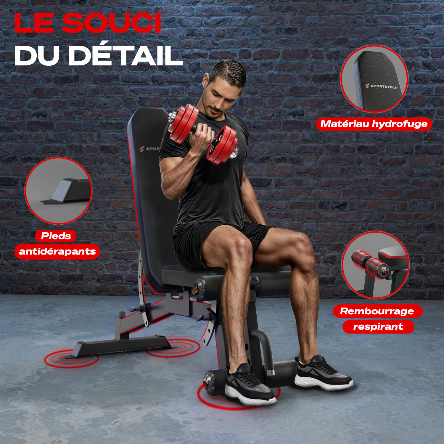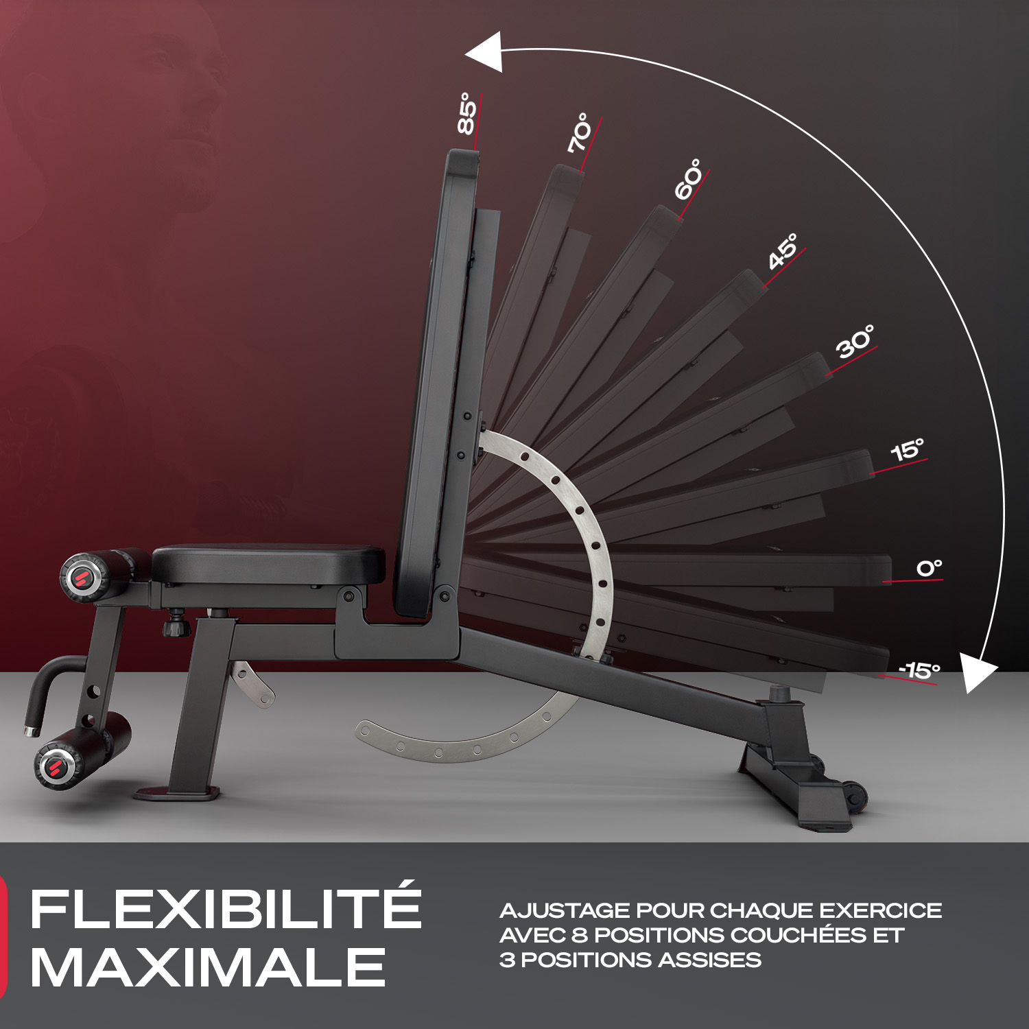 - Dossier et siège réglables offrant plus de 21 positions d’entraînement différentes