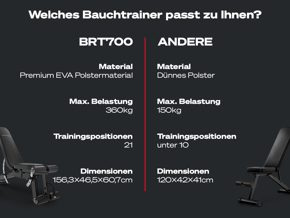 Die BRT700 ist eine multifunktionale Hantelbank, die sich perfekt für Heim- und Krafttraining eignet. Dank ihrer Verstellmöglichkeiten und robusten Bauweise bietet sie vielseitige Trainingsoptionen für Anfänger und Fortgeschrittene.