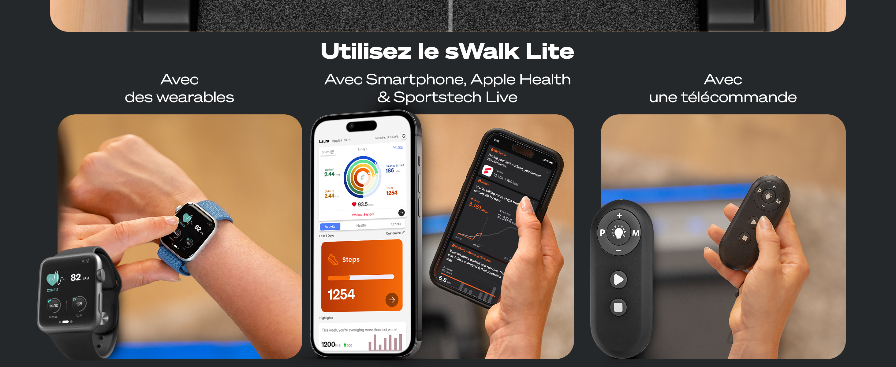 • Vous pouvez également contrôler le sWalk Lite via l’application Sportstech Live en le connectant simplement en Bluetooth.