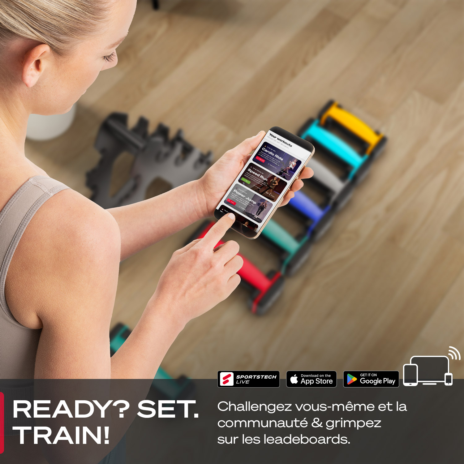 Ne tirez pas sur les bandes élastiques pendant l’utilisation des haltères si elles sont déjà fixées.