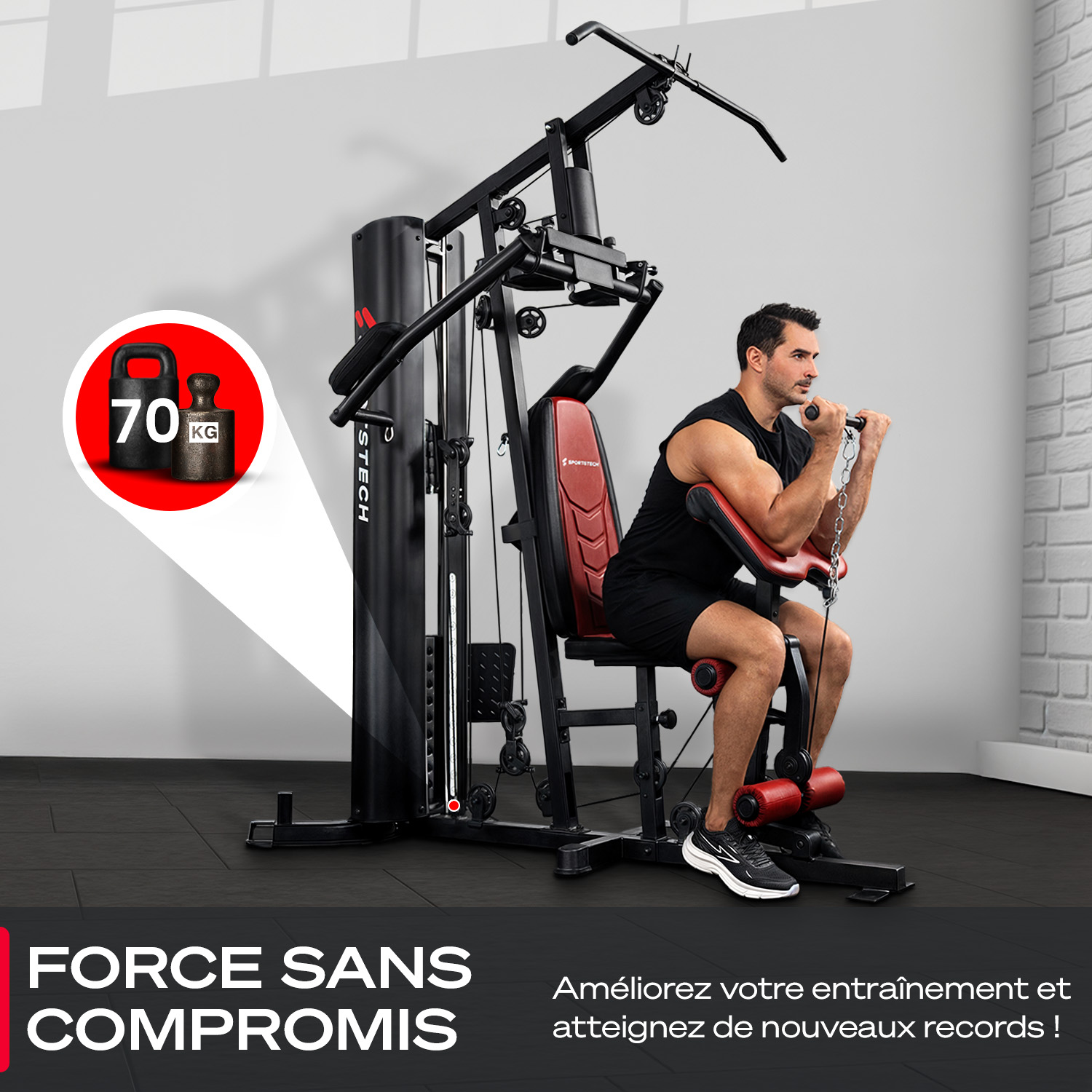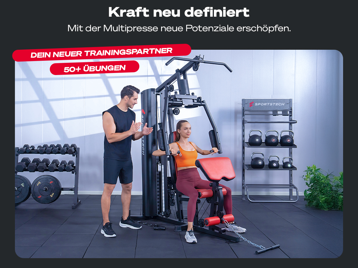 Eine Kraftstation ist ein multifunktionales Fitnessgerät, das speziell für das Ganzkörpertraining entwickelt wurde. Sie bietet die Möglichkeit, alle Muskelgruppen zu Hause effektiv zu trainieren – von der Brust- und Rückenmuskulatur über die Arme bis hin zu den Beinen.