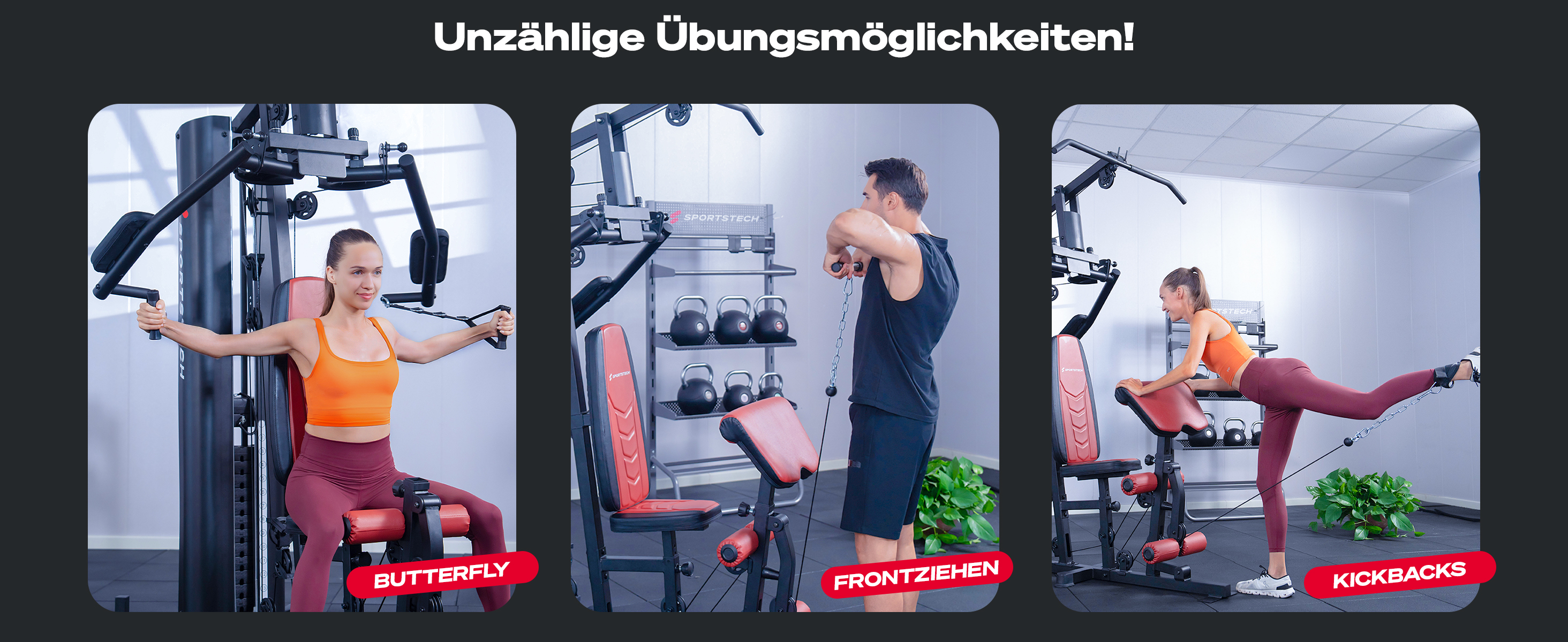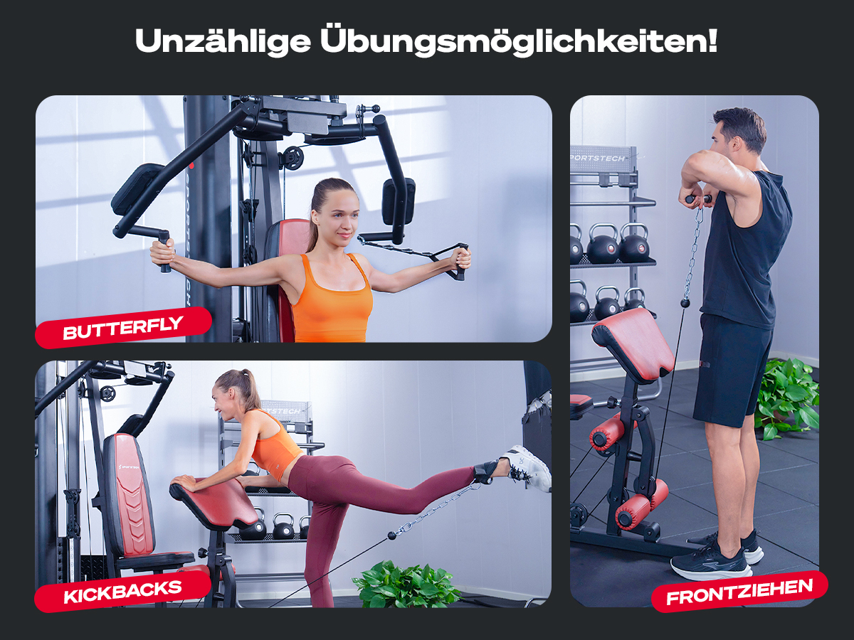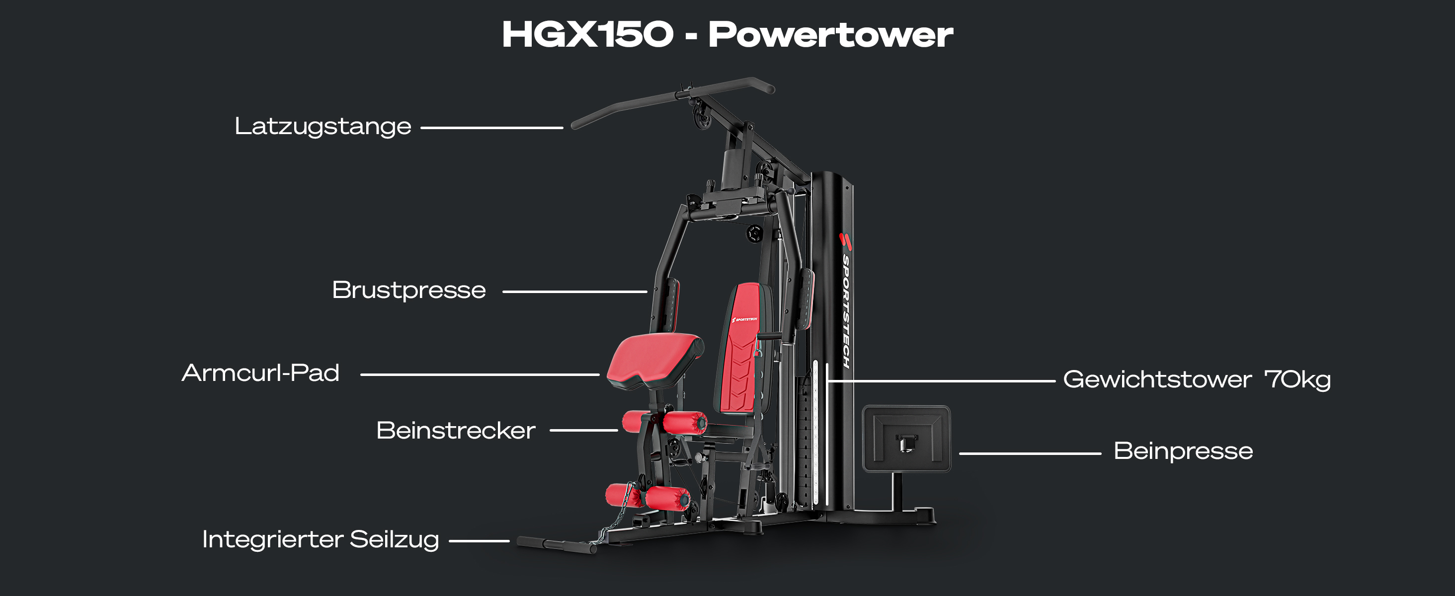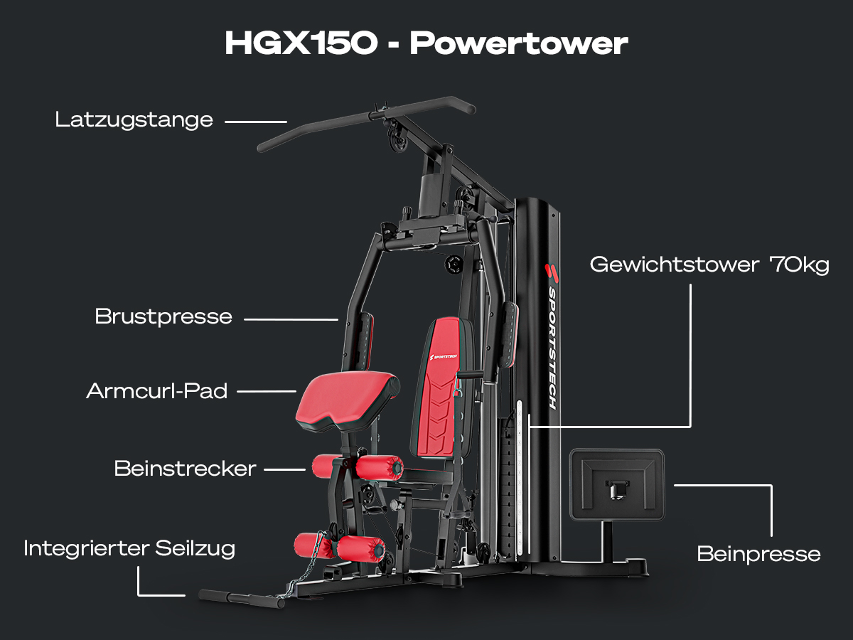 Die HGX150 ermöglicht ein vielseitiges Ganzkörpertraining mit über 50 Übungsmöglichkeiten, darunter: