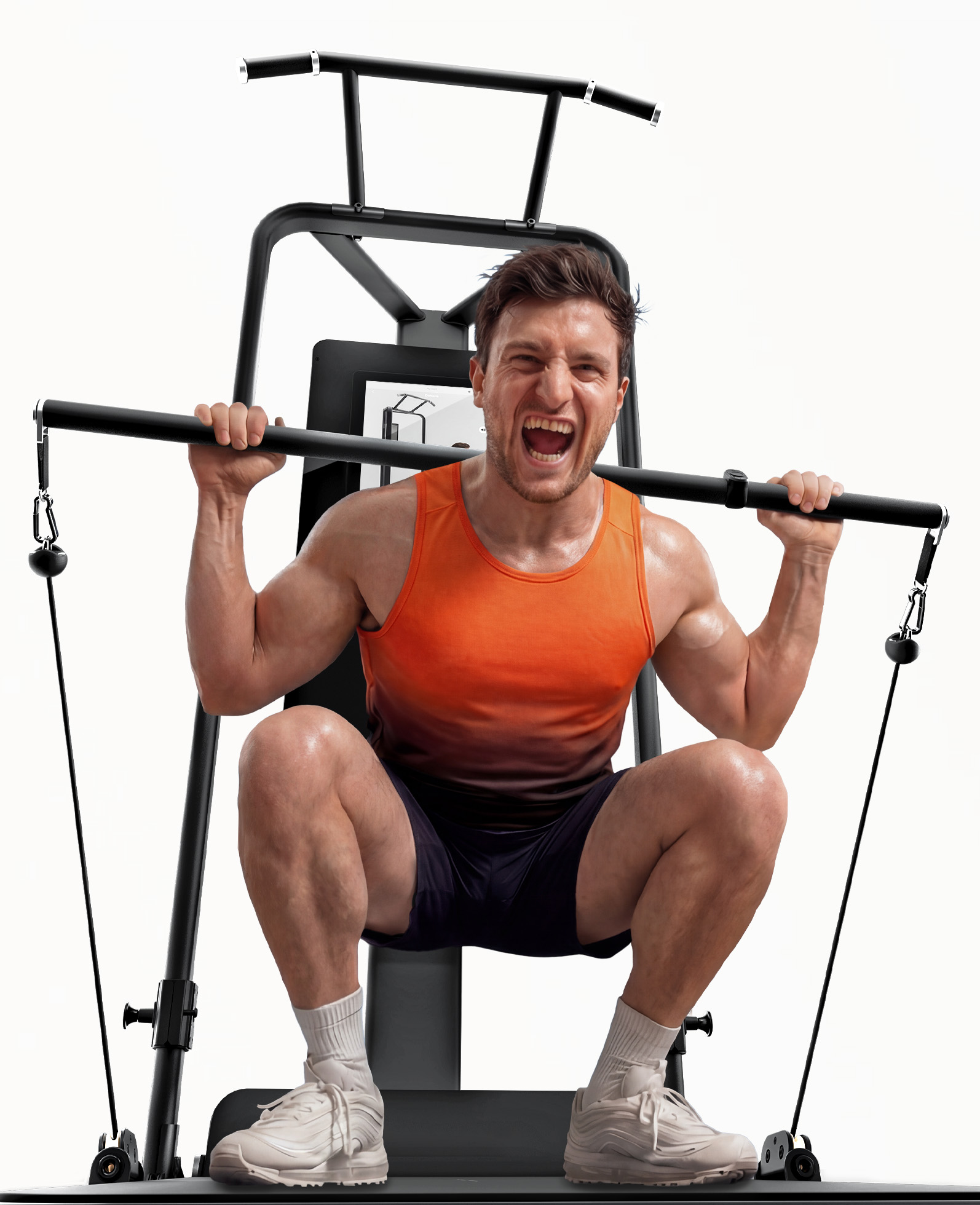 Le sGym Pro permet un entraînement complet du corps : développé couché pour la poitrine et les triceps, tirage vertical ou rowing pour le dos et les biceps, squats avec résistance pour les jambes et le tronc, ainsi que de nombreux exercices pour les épaules, les abdominaux et d’autres groupes musculaires.