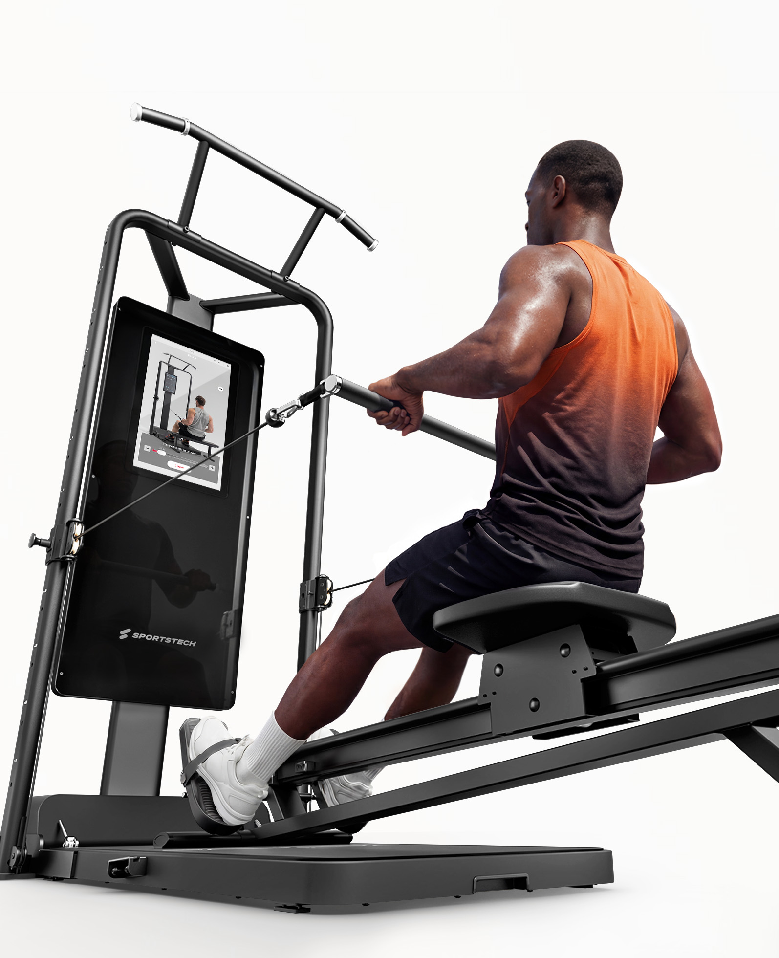Le cardio est également possible : une machine à ramer peut être ajoutée pour s’entraîner à l’aviron avec le sGym Pro.