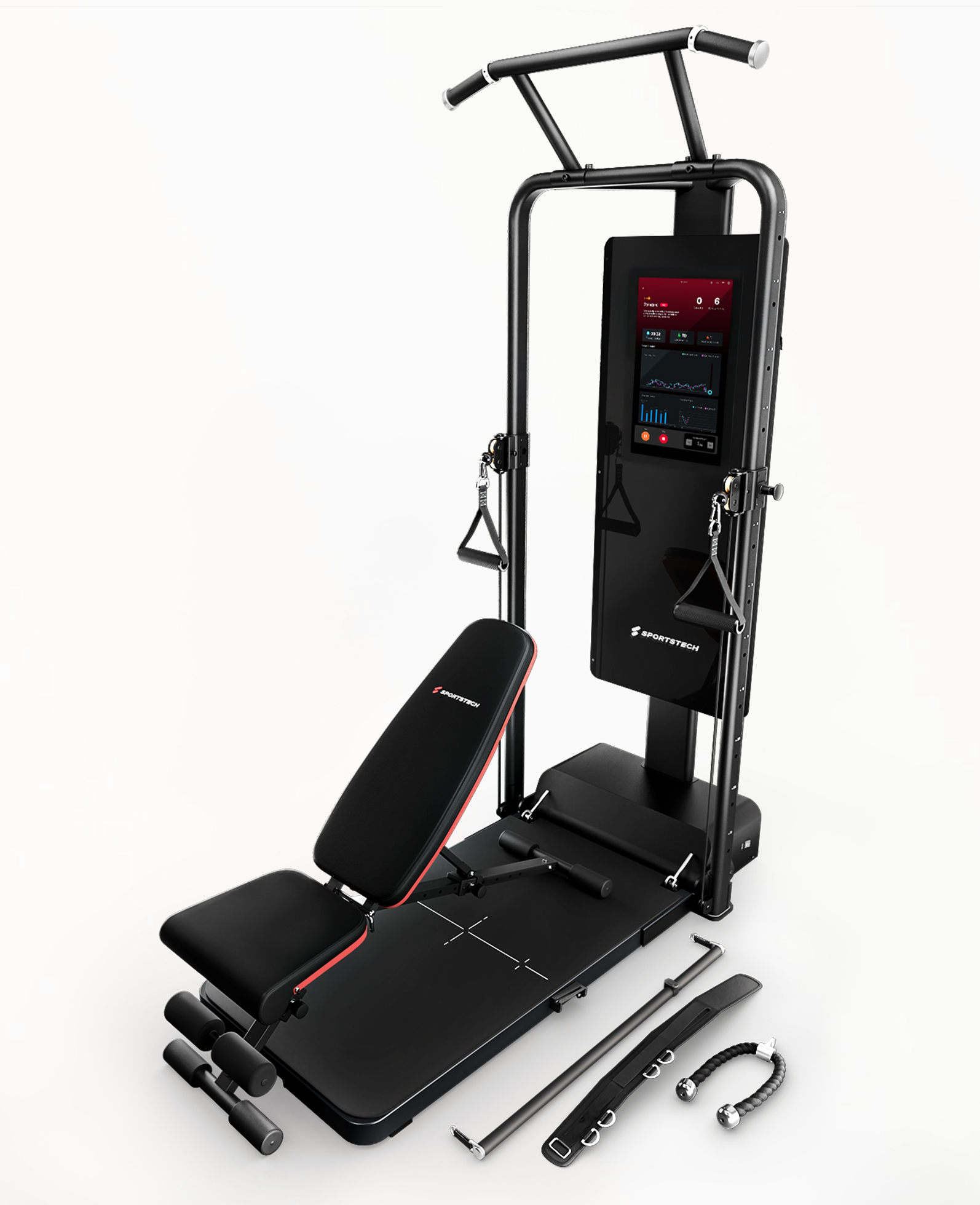 Le sGym Pro est une station de musculation intelligente et connectée avec écran intégré. La résistance n’est pas générée par des disques de poids classiques, mais par des moteurs modernes, ce qui permet un réglage très précis et flexible. Avec une charge maximale de 120 kg, il offre des entraînements variés pour tous les niveaux. Plus de 300 vidéos d’exercices sont directement intégrées, complétées par d’autres programmes d’entraînement. Malgré ses performances élevées, l’appareil occupe peu d’espace et convient donc aussi aux pièces de petite taille. Il permet un entraînement complet du corps et vous aide à atteindre efficacement vos objectifs fitness.