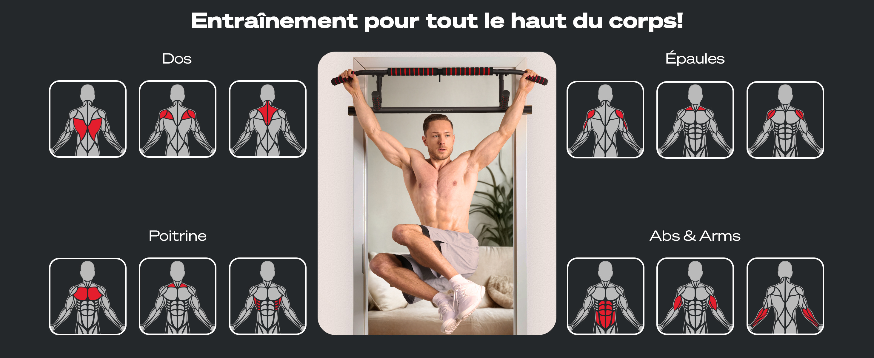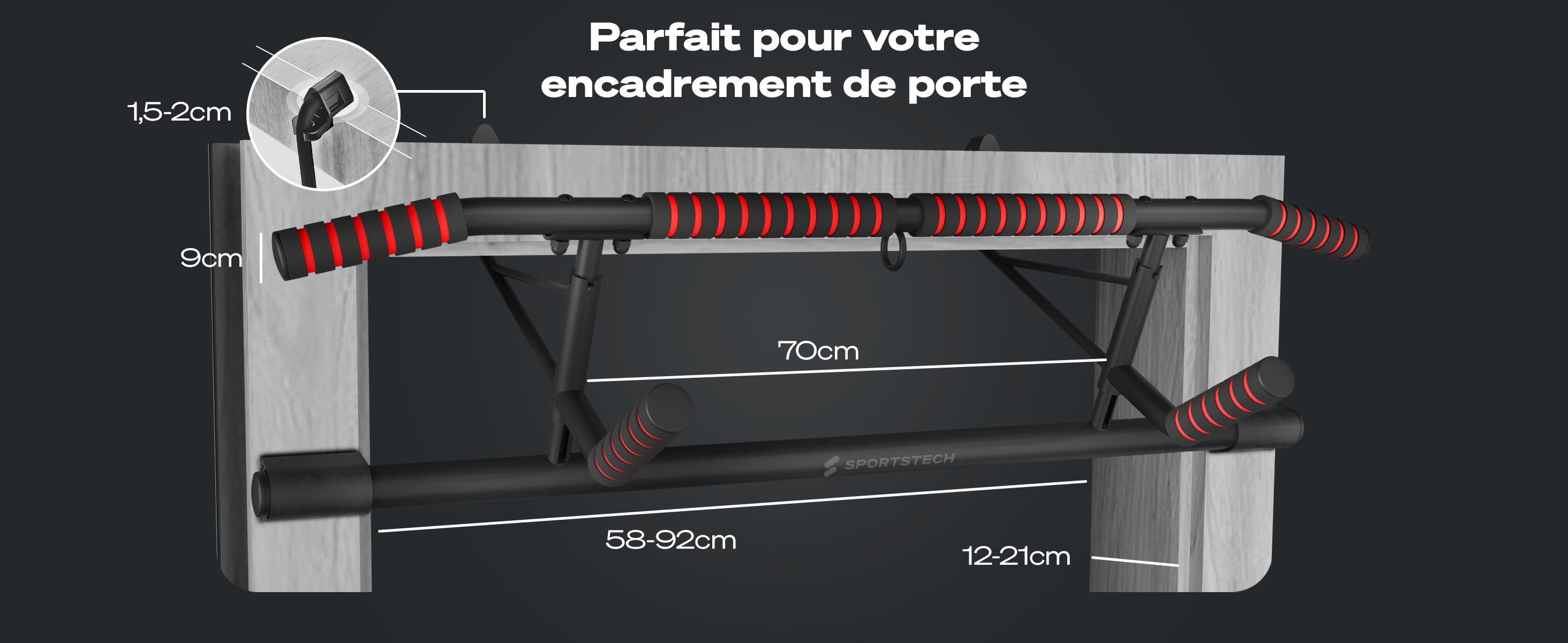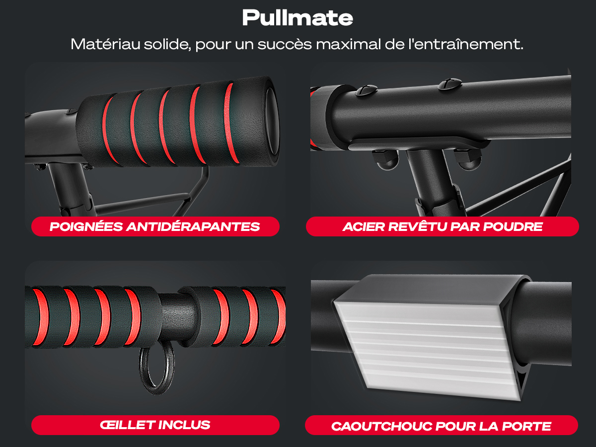 - Inclus : bandes d’assistance pour tractions et sangles TRX