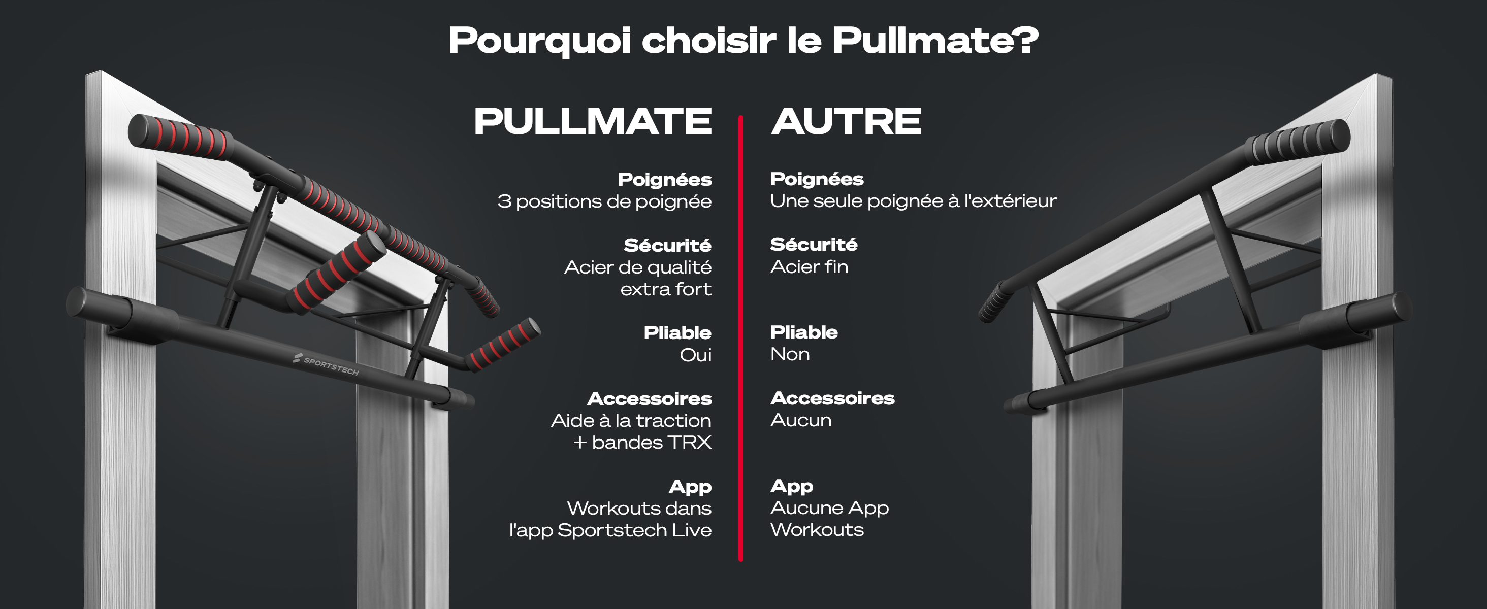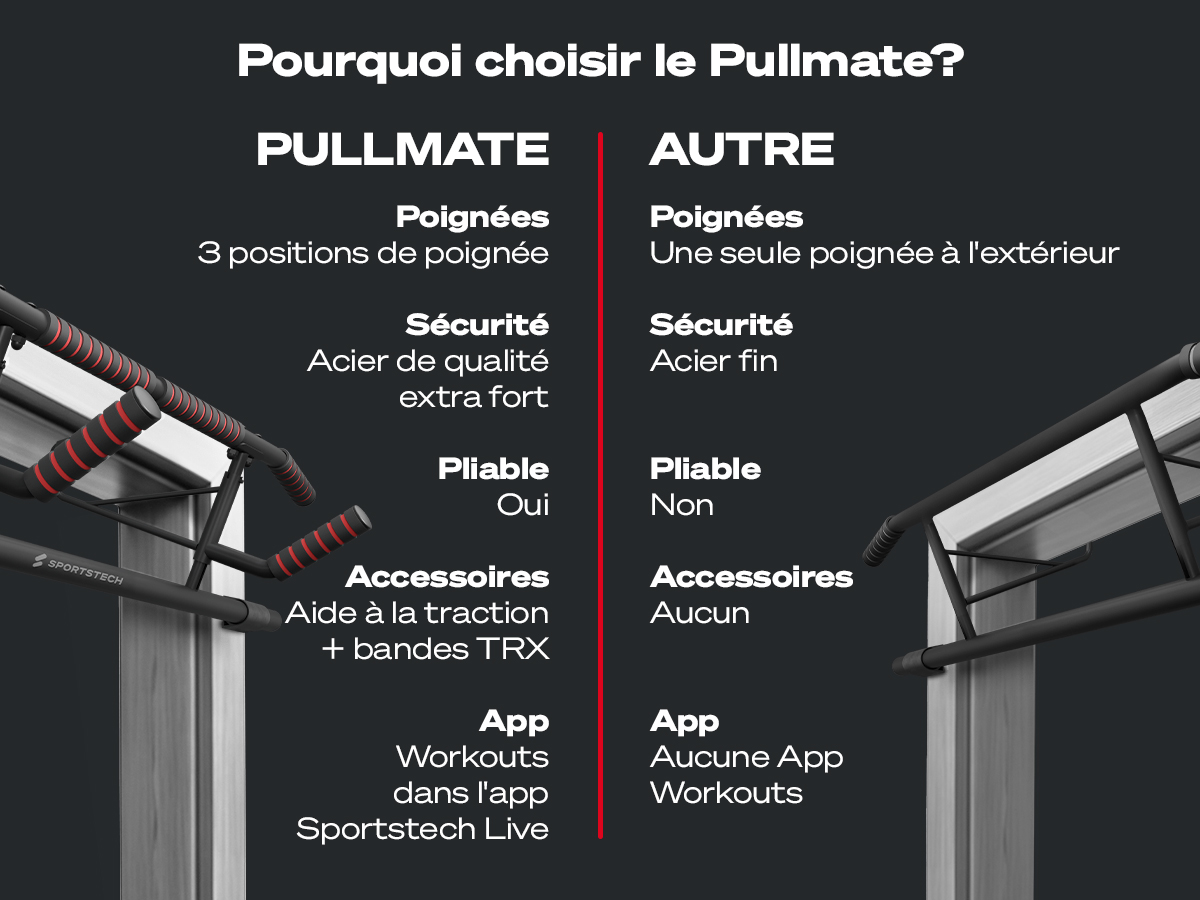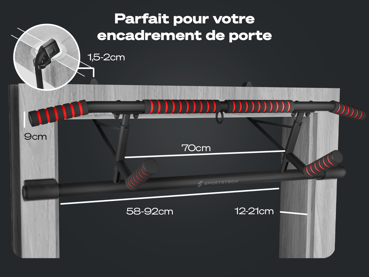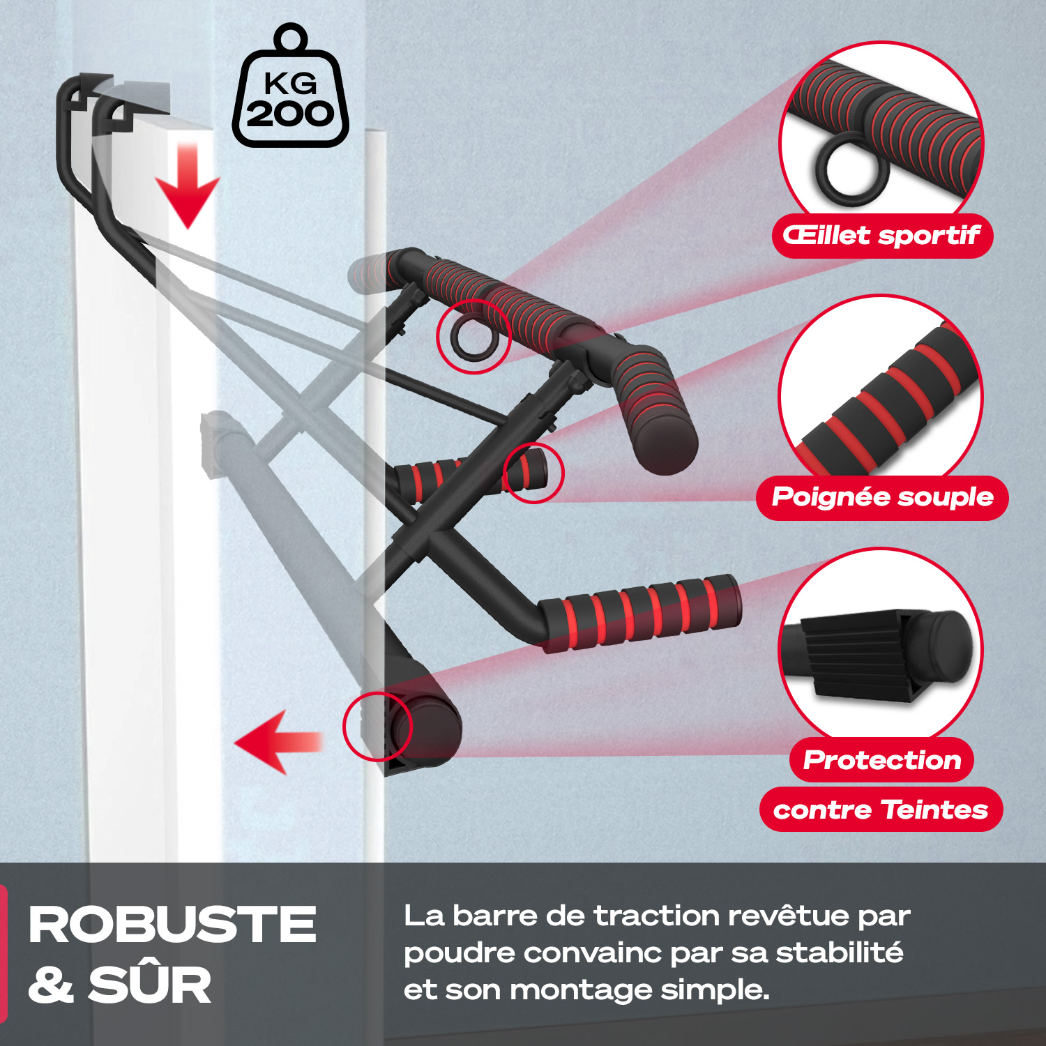- Inclus : bandes d’assistance pour tractions et sangles TRX