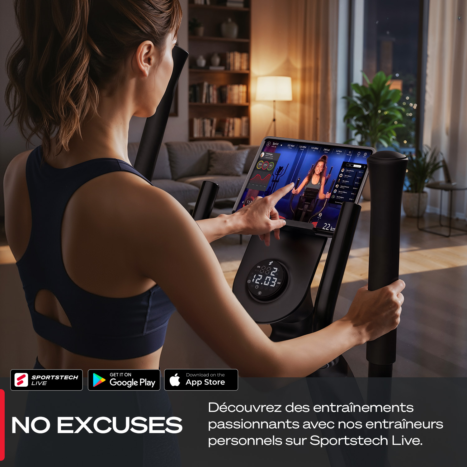 Oui, tu peux connecter tes appareils via Bluetooth, par exemple pour utiliser l’application Sportstech Live.