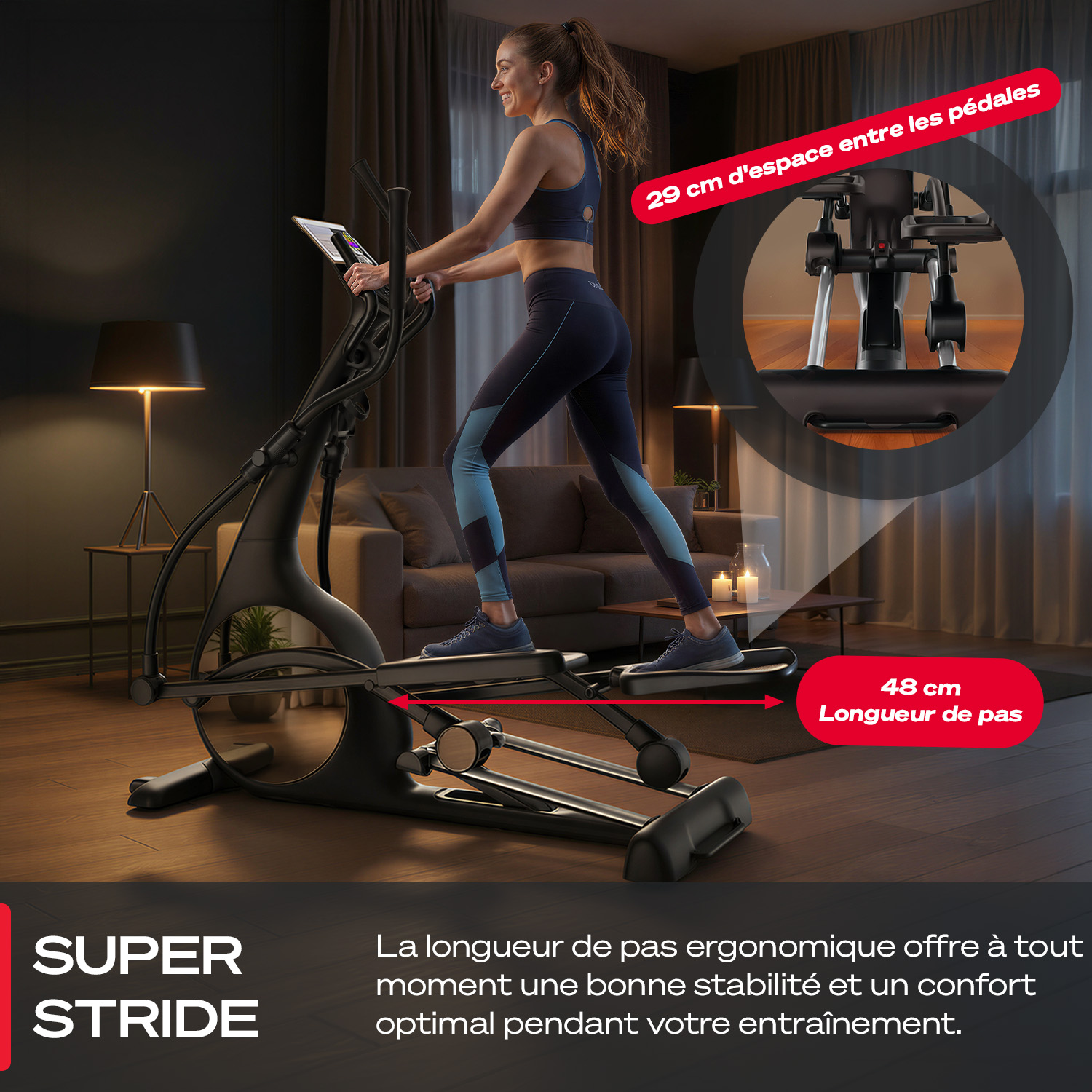 - Confort ergonomique avec une longueur de foulée de 48 cm