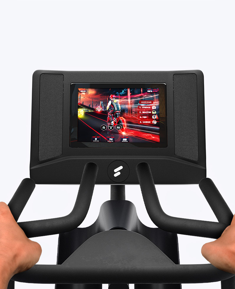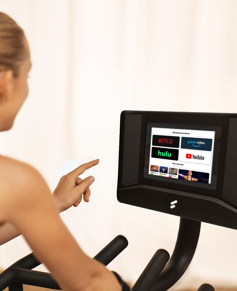 L’écran tactile HD intégré de 21,5" te donne accès aux workouts, métriques intelligentes, défis, gamification, fonctions communautaires et services de streaming comme Netflix et YouTube.