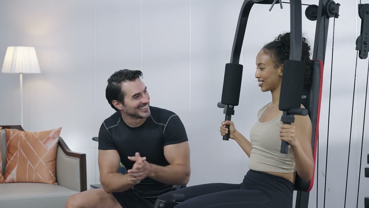 - Plus de 40 exercices au câble comme le rowing, le développé couché, le tirage lat et l’extension des jambes