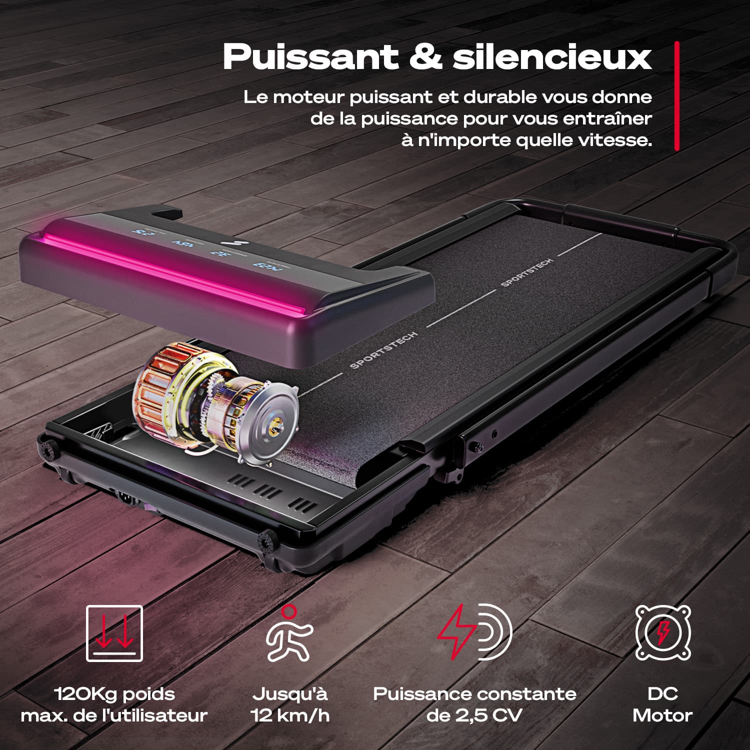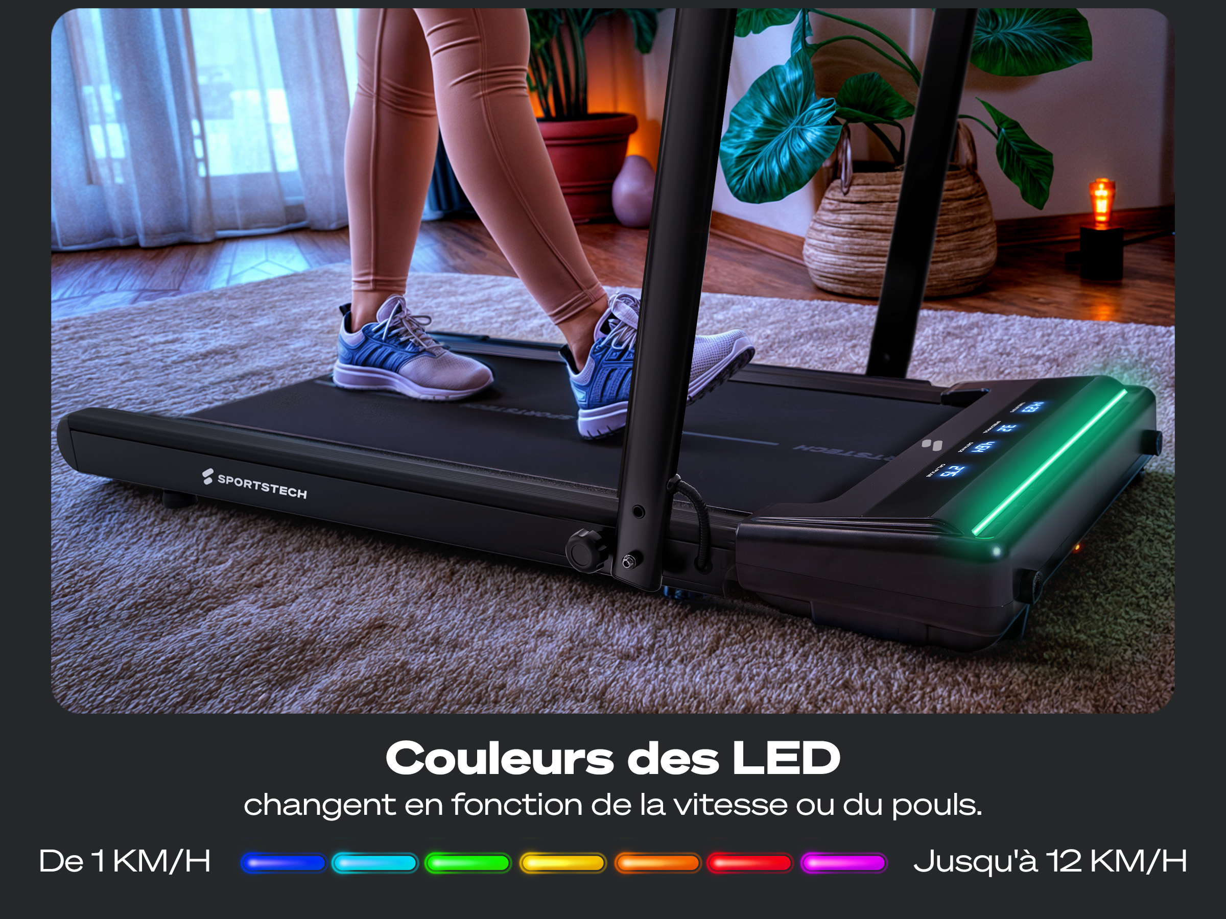 Oui, le tapis est compatible avec l’application Sportstech Live, qui permet de :