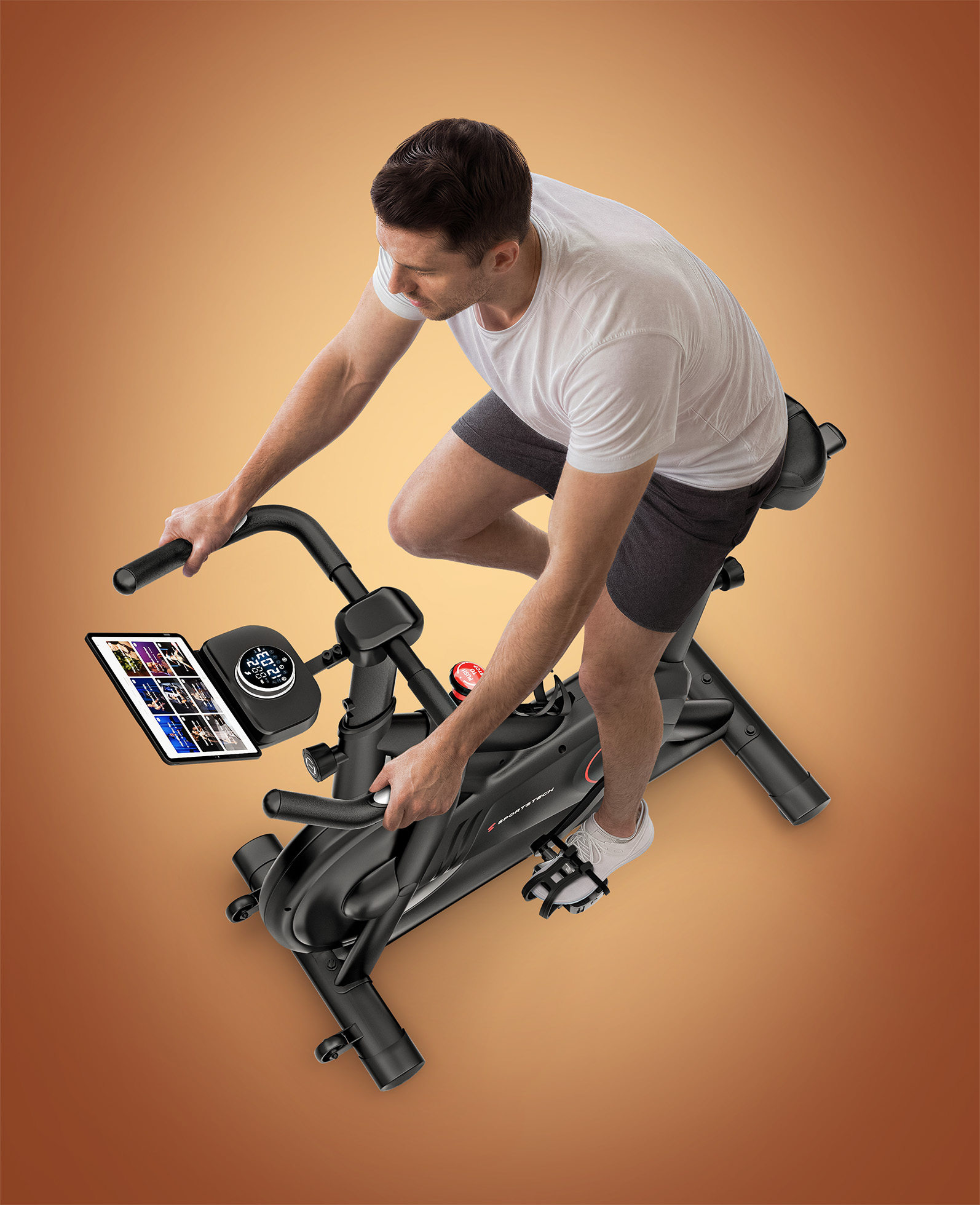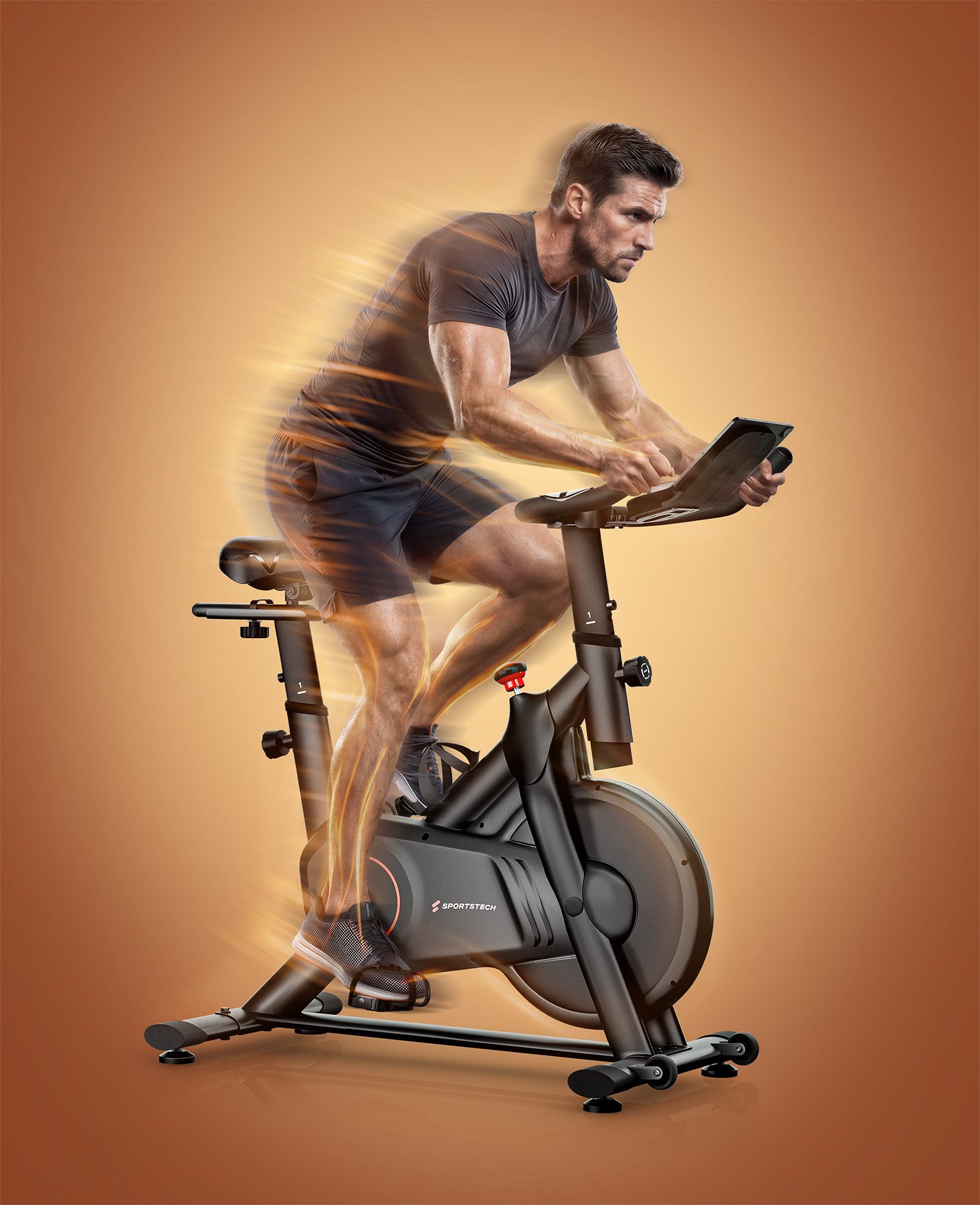 - Achtung Verletzungsgefahr: Das Schwungrad besitzt keine Freilauf-Funktion. Die Pedale drehen sich weiter, auch wenn du aufhörst zu treten.