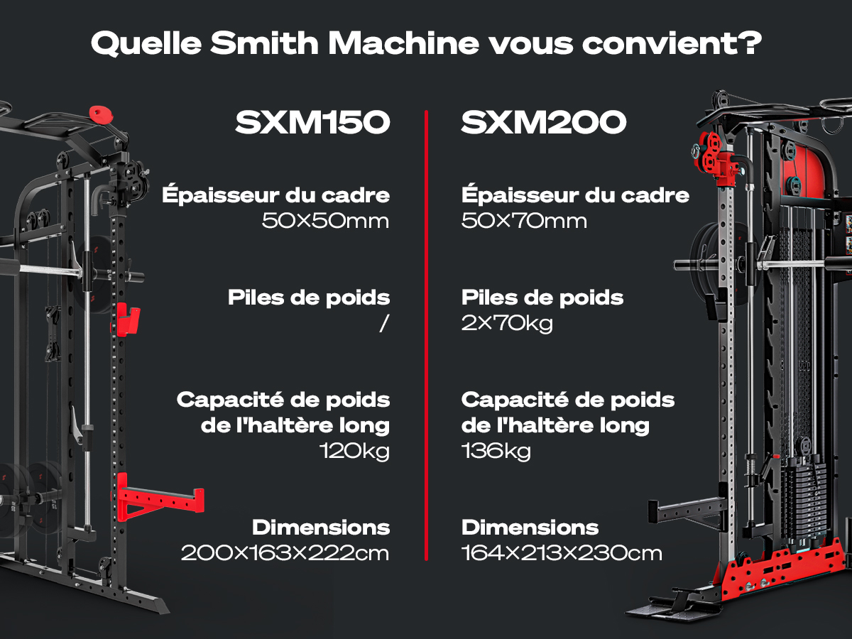 Eine Smith Machine ist ein multifunktionales Fitnessgerät, das speziell für geführte Krafttrainingsübungen entwickelt wurde. Im Vergleich zu klassischen Kraftstationen bietet sie eine geführte Langhantelstange, die durch Sicherheitsmechanismen wie Stopper und Führungsstangen unterstützt wird. Dies ermöglicht ein sicheres Training mit schweren Gewichten, auch ohne Trainingspartner. Klassische Kraftstationen kombinieren meist Kabelzüge und vorinstallierte Gewichtsblöcke, während bei der Smith Machine die Gewichtsbelastung über Hantelscheiben erfolgt.