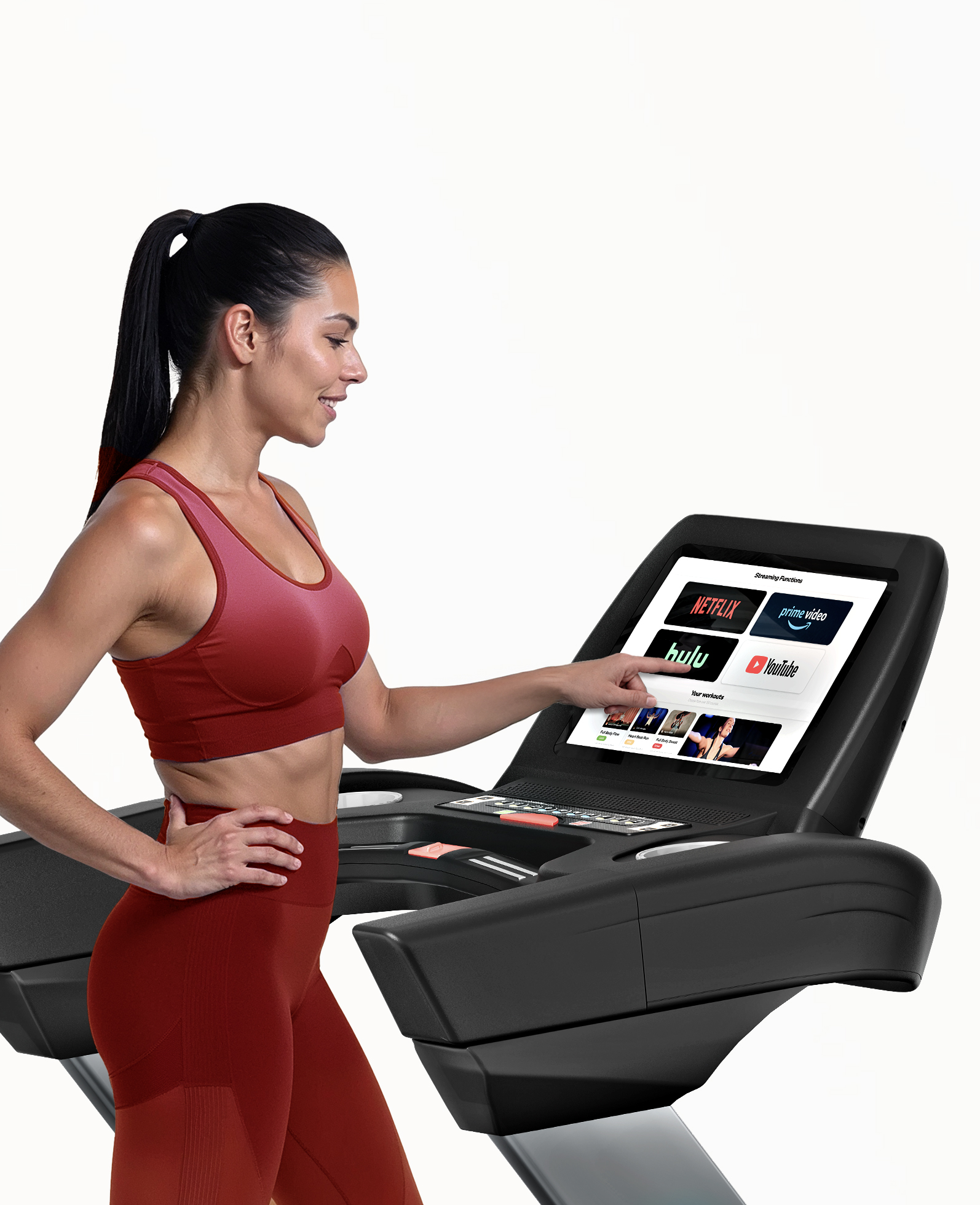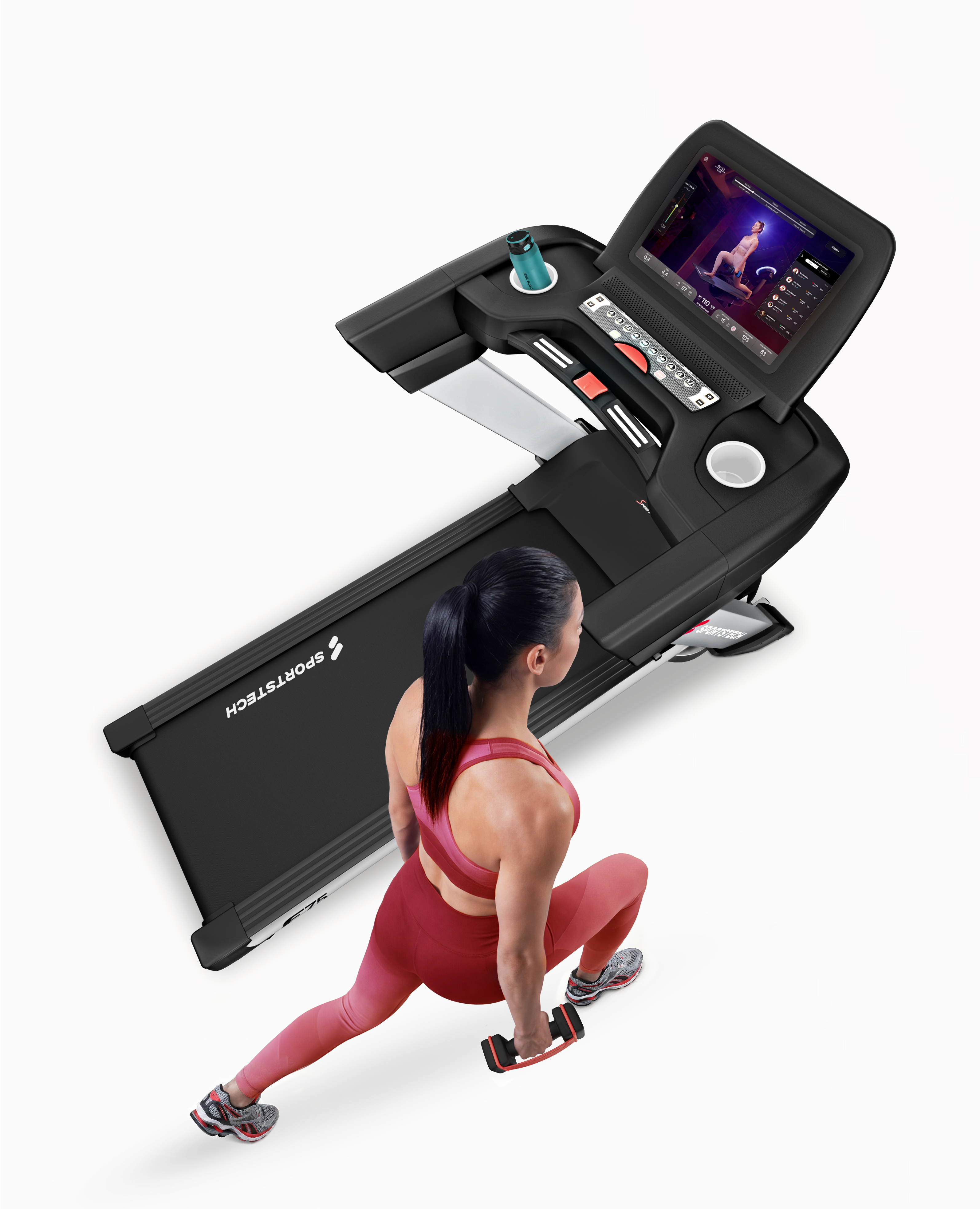 L’application Sportstech Live est le centre d’entraînement numérique du F75. Elle est préinstallée sur l’écran et affiche clairement les données d’entraînement telles que la vitesse, la distance, le temps ou les calories. En outre, l’application propose des plans d’entraînement personnalisés, des recommandations d’entraînement basées sur l’IA, des défis communautaires, de nombreux entraînements, des contenus de divertissement ainsi que des vidéos de paysages motivantes.*