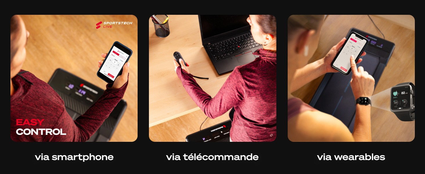 Oui, tu peux connecter tes appareils via Bluetooth, par exemple pour utiliser l’application Sportstech Live.