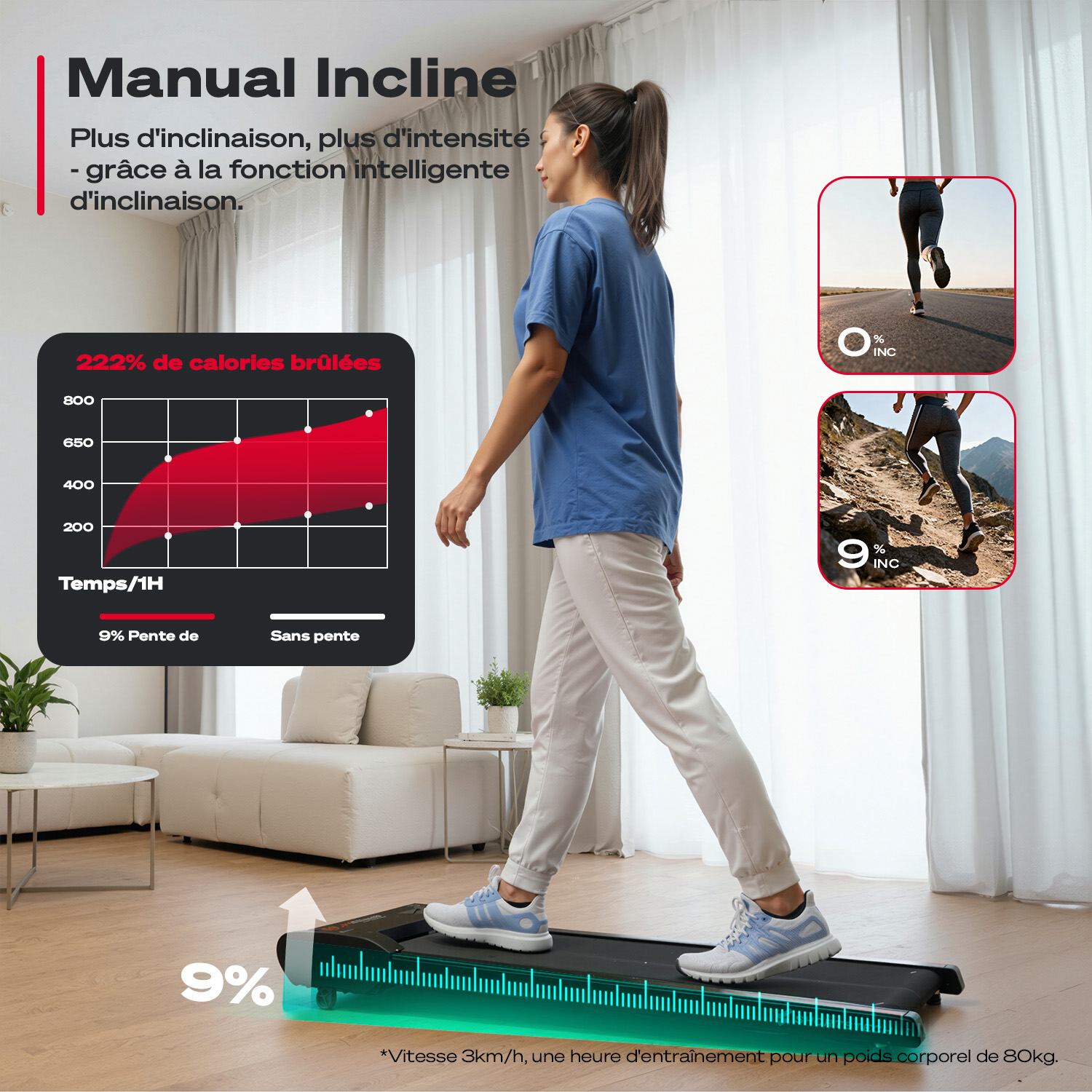 - Inclinaison manuelle de 9 %